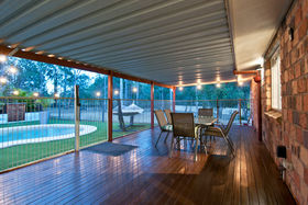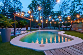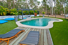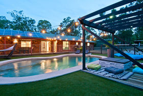 • Pool area with pergola, sun deck and artificial grass providing easy maintenance colour for the backyard.