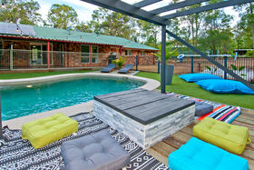 This home is everything I envision when picturing an acreage lifestyle. Set uphill from the road at the end of a quiet cul-de-sac this beautiful Queenslander style residence sits in the centre of a selectively cleared 2-acre block. The home is bright and breezy with French doors opening from all bedrooms and the lounge to the full-length front veranda, and glass sliders from the rumpus and dining rooms to the large rear deck. An entertainer's dream spend summer taking in the breeze on the covered deck overlooking the sparkling in ground pool, and winter swapping stories from the log benches around the bon fire, or cosy inside with the wood burning fire place roaring.